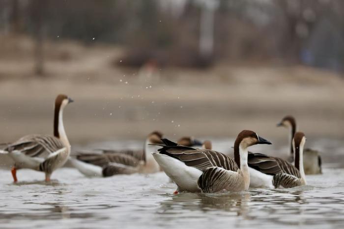 雨水节气过后,气温回升,北京南海子公园迎来首批北归鸿雁。近日,约数十只鸿雁集结于园区湖面,或游弋觅食、或列队滑翔,吸引众多市民与摄影爱好者前来观鸟打卡。